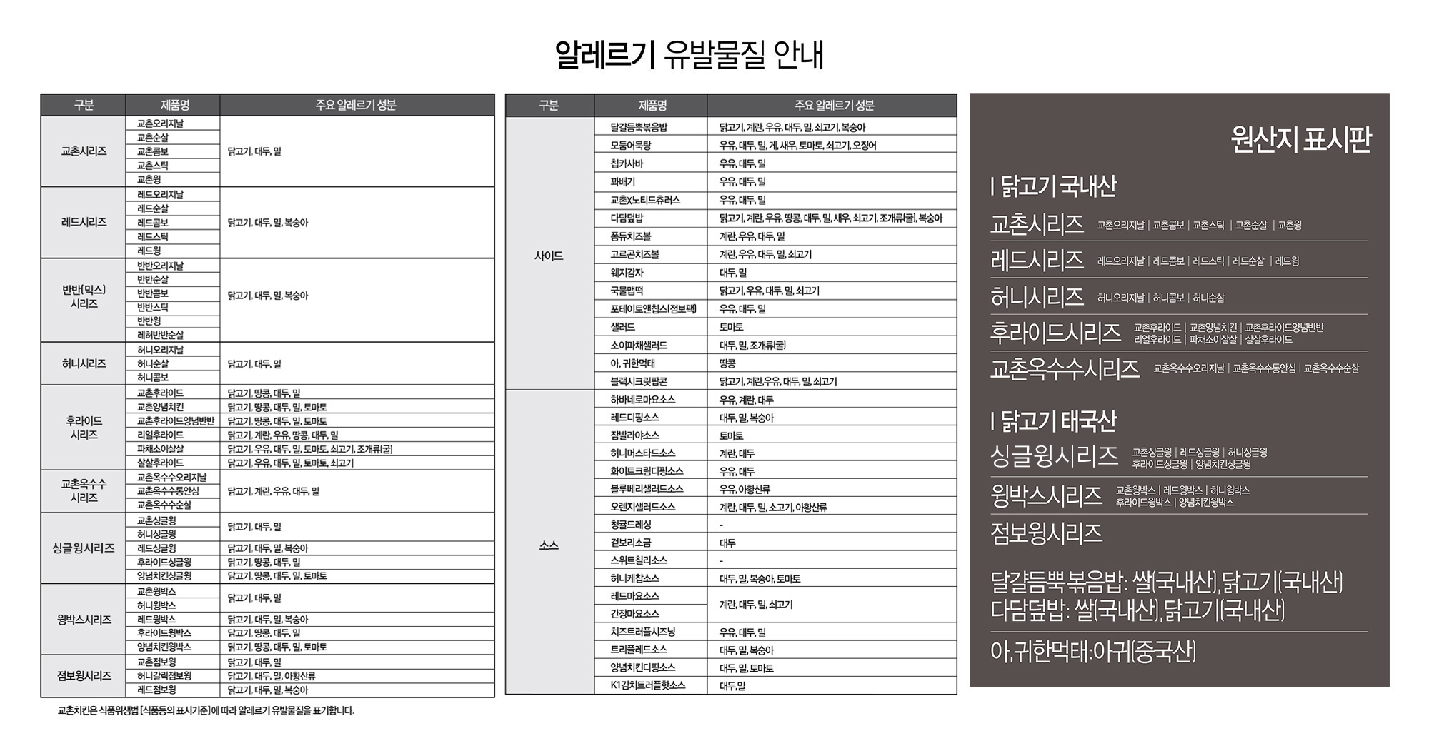 우리 교촌F&B를 이용하는 많은 고객님들 에게 무차별적이고 무분별하게 발송되는 타사(他社)의 메일 발송을 차단하기 위해서, 본 웹 사이트에 게시된 이메일 주소가 전자 우편 수집 프로그램이나 그 밖의 기술적인 장치를 이용하여 무단으로 수집되는 것을 거부합니다.