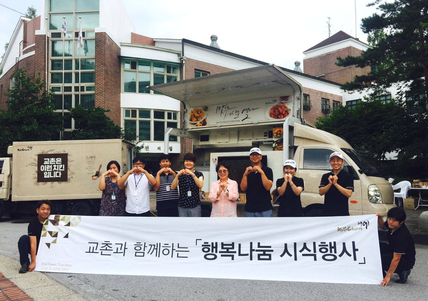 3월부터 매달 지속적으로 ‘행복나눔 시식행사’를 진행하고 있다. 지리적 특성상 교촌치킨을