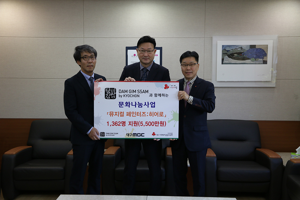 -대구사회복지공동모금회 통해 뮤지컬 ‘페인터즈:히어로’ 티켓 1362매(5500만원) 후원 국내 대표 치킨 프랜차이즈 교촌에프앤비㈜가 대구사회복지공동모금회를 통해 지역 저소득층 가정 청소년을 위한