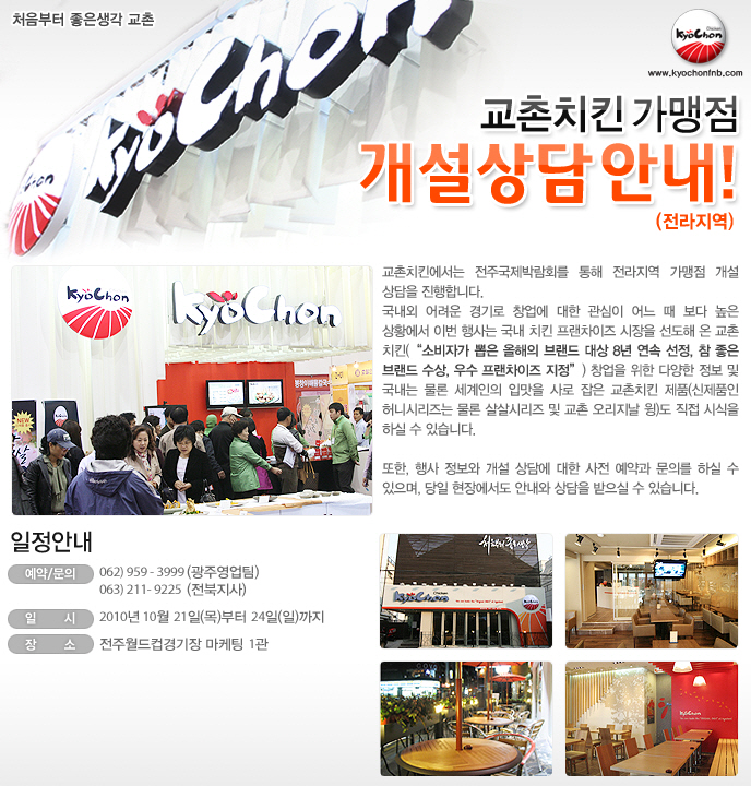 [] 교촌치킨 가맹점 개설 상담안내!(전라 지역) 등록일 : 2010-10-13