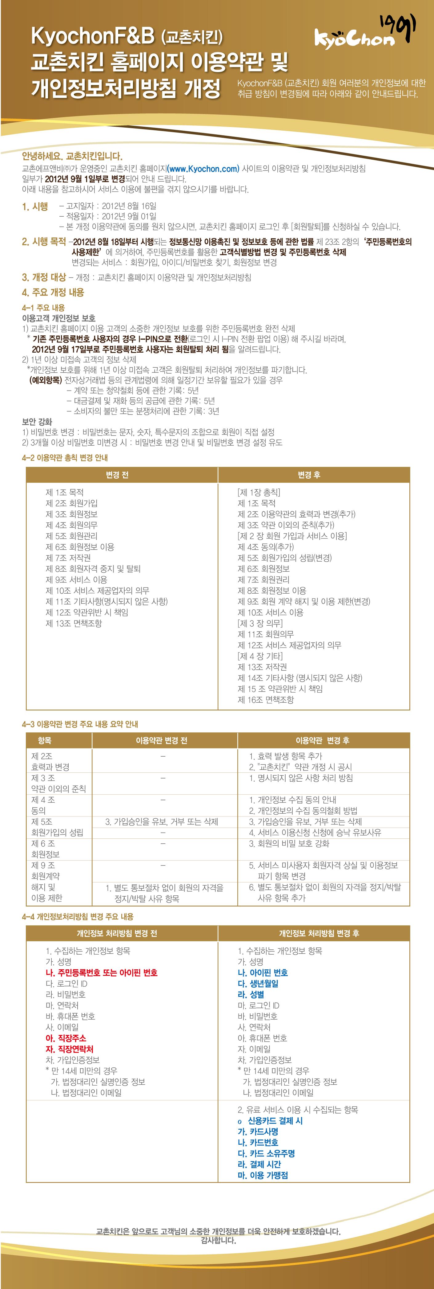 우리 교촌F&B를 이용하는 많은 고객님들 에게 무차별적이고 무분별하게 발송되는 타사(他社)의 메일 발송을 차단하기 위해서, 본 웹 사이트에 게시된 이메일 주소가 전자 우편 수집 프로그램이나 그 밖의 기술적인 장치를 이용하여 무단으로 수집되는 것을 거부합니다.