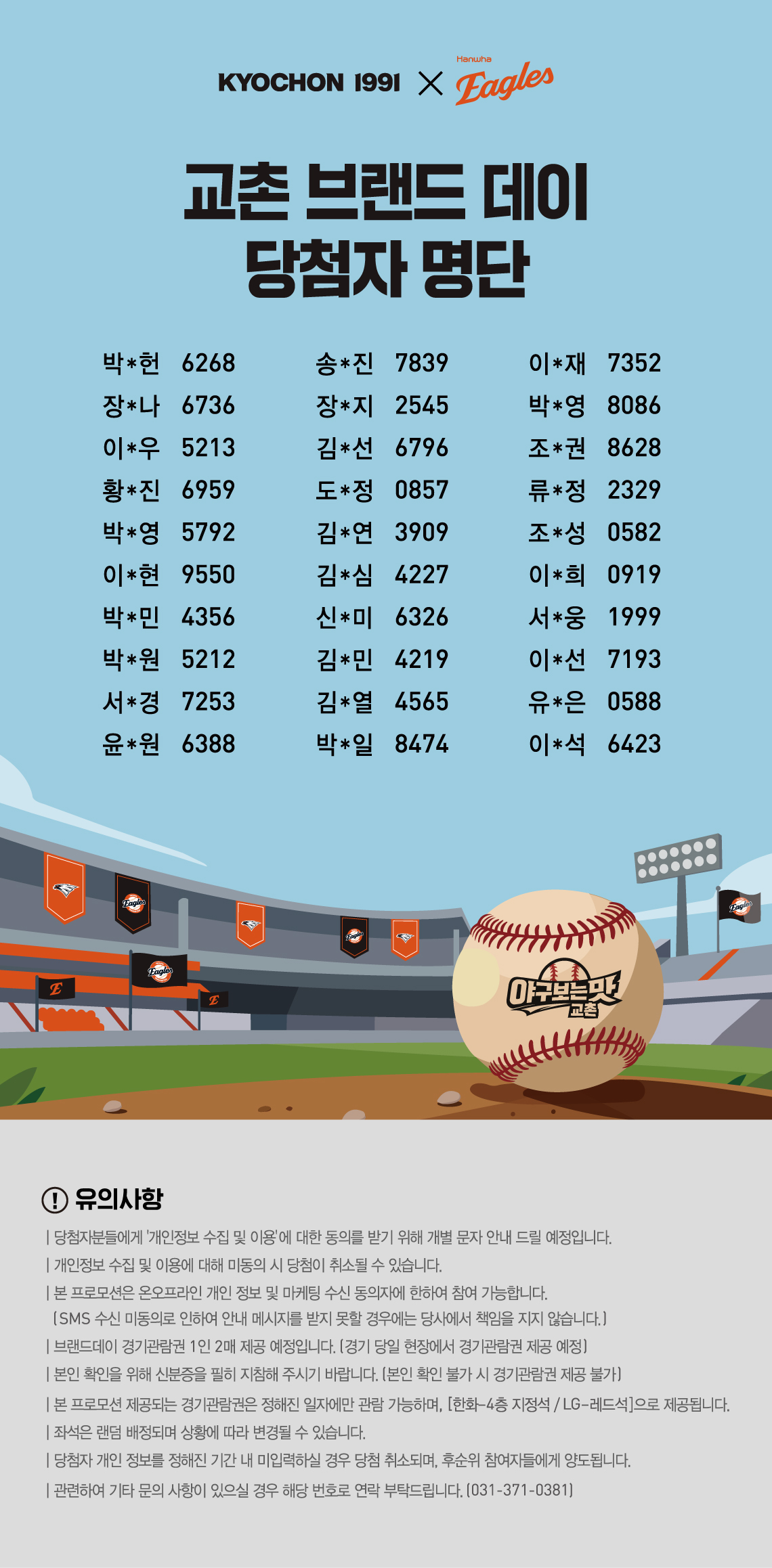 프로야구 고객 초청 프로모션 당첨자 발표 [한화 이글스] 이벤트기간 : 2026-04-09 ~ 2026-04-22